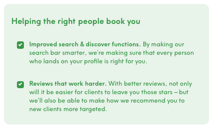 Treatwell is developing new ways to help you stand out from the crowd and connect with the right clients. The focus is on smarter matching, helping both you and your clients find the perfect fit for their needs.